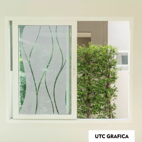 El esmerilado va sobre vidrio, mamparas, ventanas, divisiones de oficinas y ambientes.